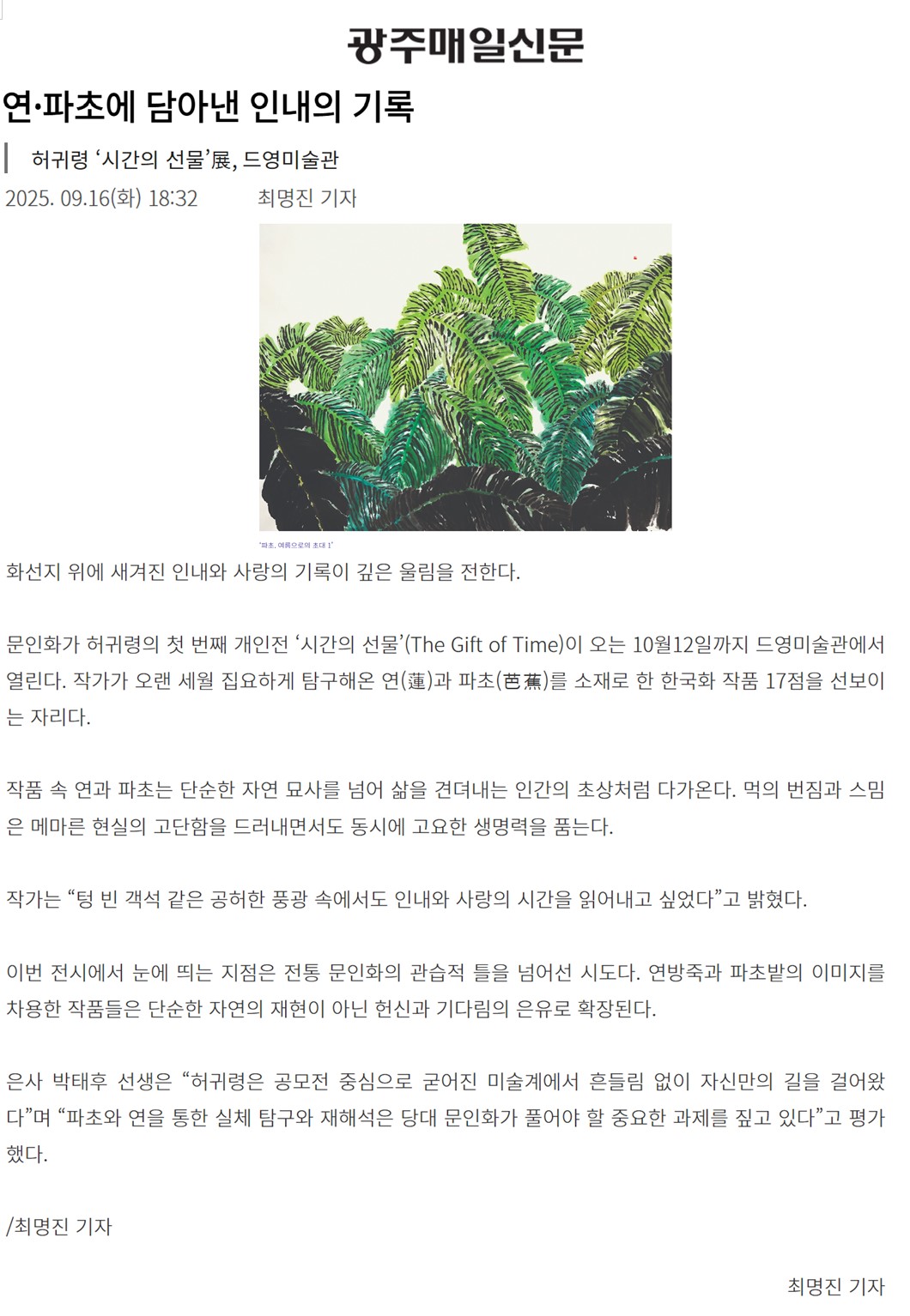 ![]() ¿¬¡¤ÆÄÃÊ¿¡ ´ã¾Æ³½ Àγ»ÀÇ ±â·Ï - ±¤ÁÖ¸ÅÀϽŹ® |