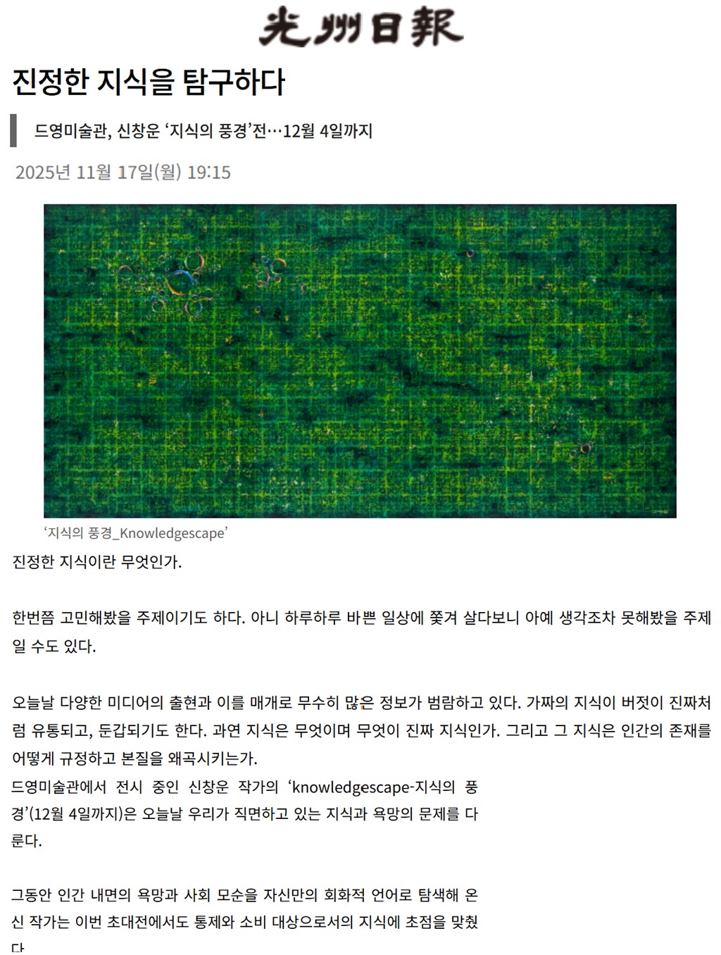 | Á¦ ¸ñ | [±¤ÁÖÀϺ¸] ÁøÁ¤ÇÑ Áö½ÄÀ» ޱ¸ÇÏ´Ù | |||