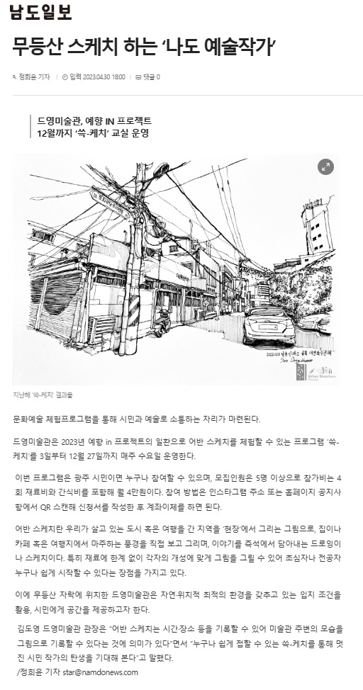 | Á¦ ¸ñ | ¹«µî»ê ½ºÄÉÄ¡ ÇÏ´Â ¡®³ªµµ ¿¹¼úÀÛ°¡¡¯- ³²µµÀϺ¸ | |||